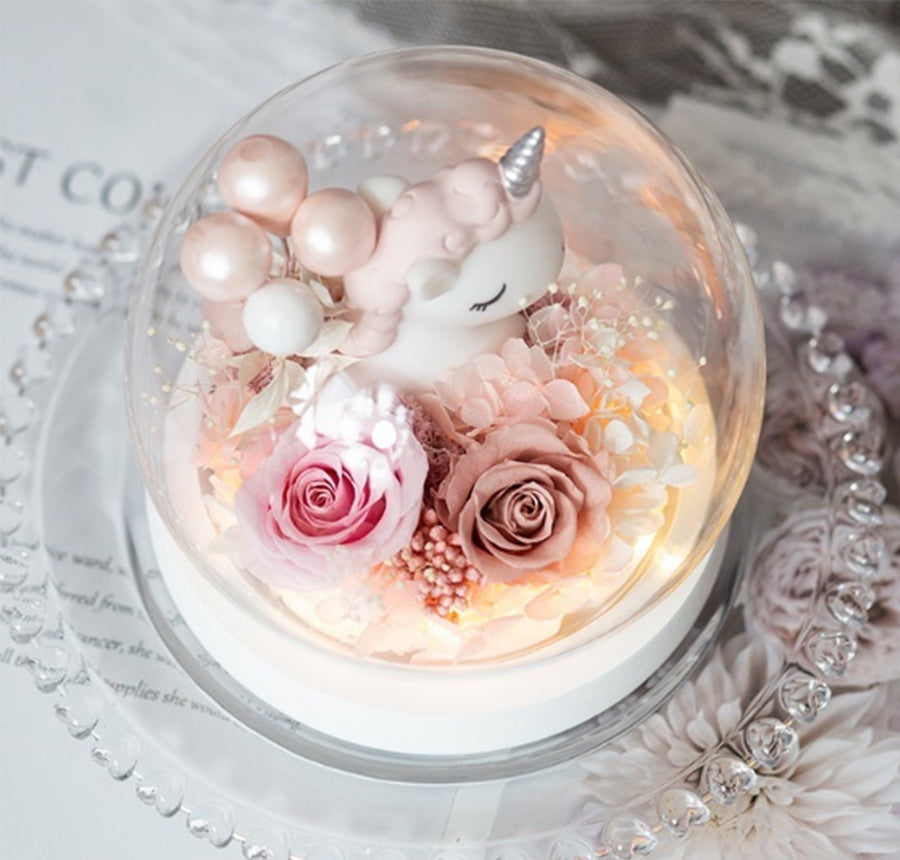 She was born in Melbourne, Australia, just before Christmas, during the height of flower season. To welcome her into the world, I made something truly special: a baby unicorn preserved flower dome.